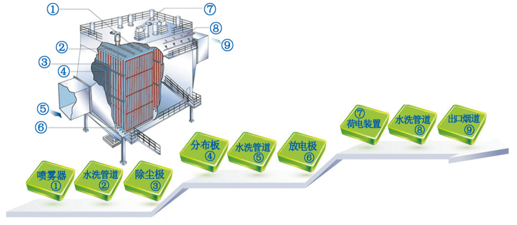 清灰:水流从集尘板顶端流下,在集尘板上形成一层均匀稳定的水膜,将板上的颗粒带走